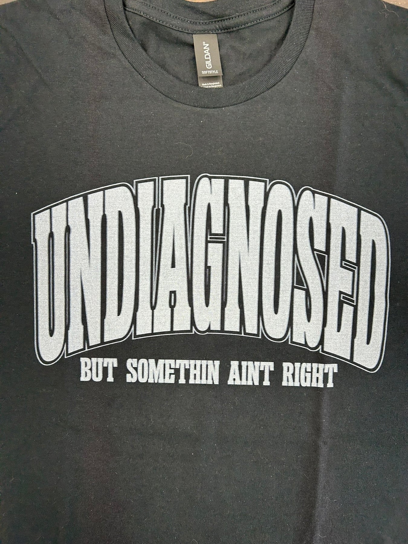 The "Undiagnosed But Something Ain't Right" t-shirt delivers a sharp, sarcastic edge with expert craftsmanship. Made from soft, durable fabric, it ensures comfort while making a witty statement. Perfect for those who appreciate humor with a hint of irony, this tee blends casual style with a bold message, ideal for everyday wear or sparking conversation.