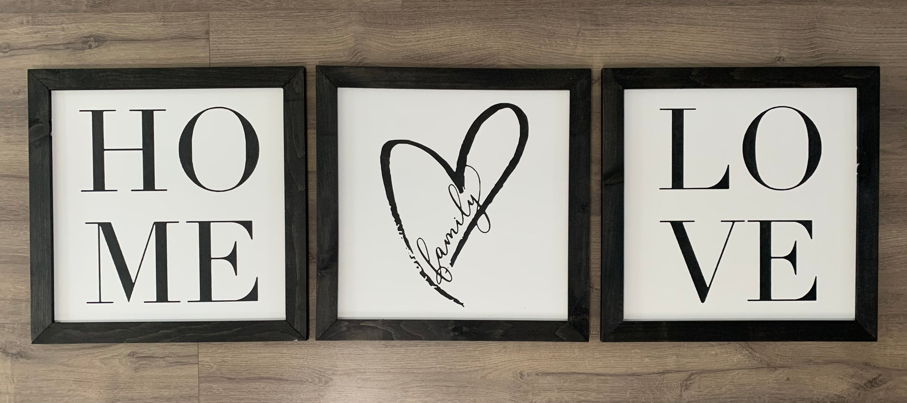 Enhance the warmth and love in your home with our 3 Piece HOME FAMILY LOVE Sign set. Crafted with high-quality materials and precision, these signs serve as a beautiful reminder of what truly matters. Display them together or separately, and create a cozy and inviting space for your family and friends.