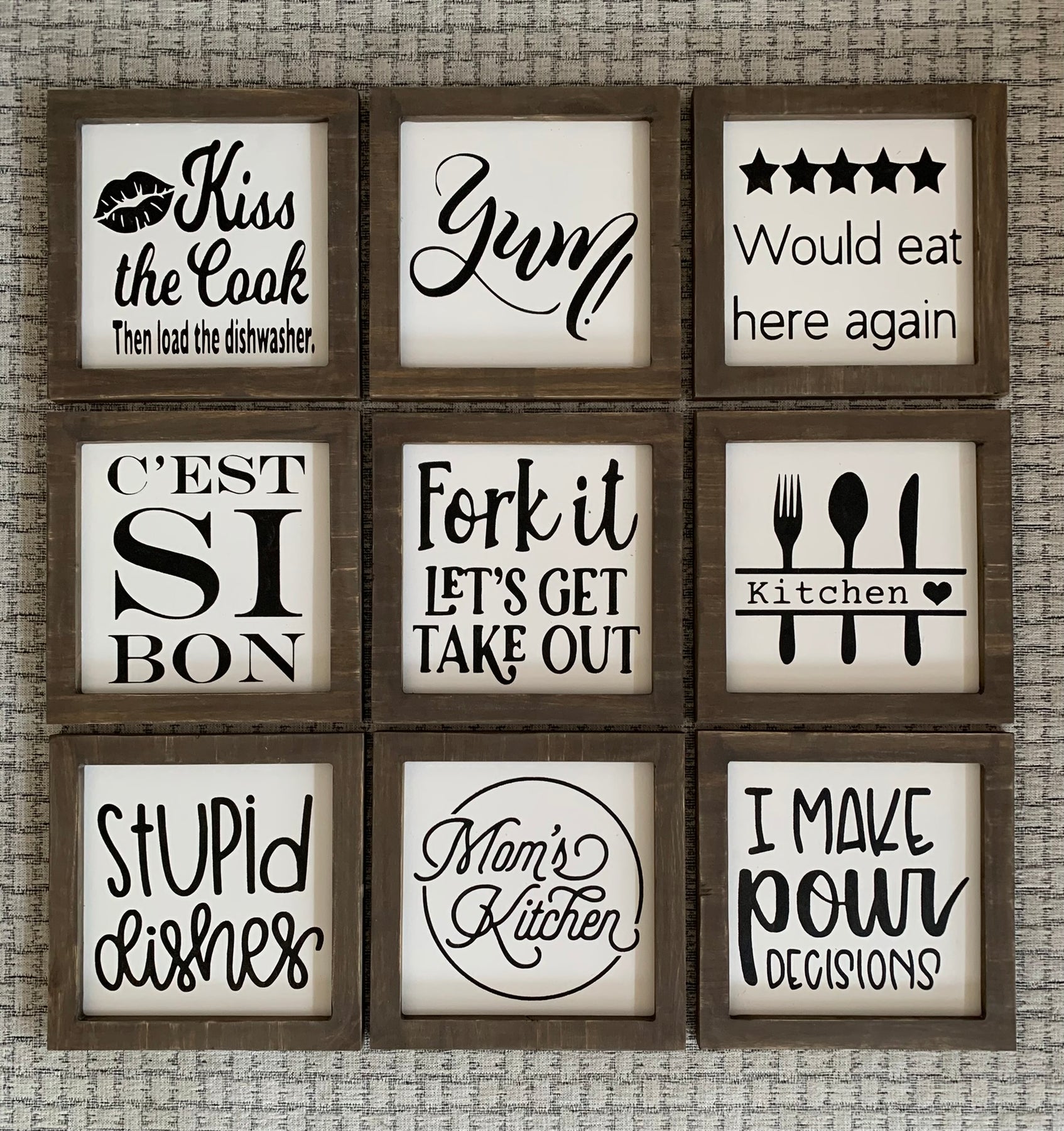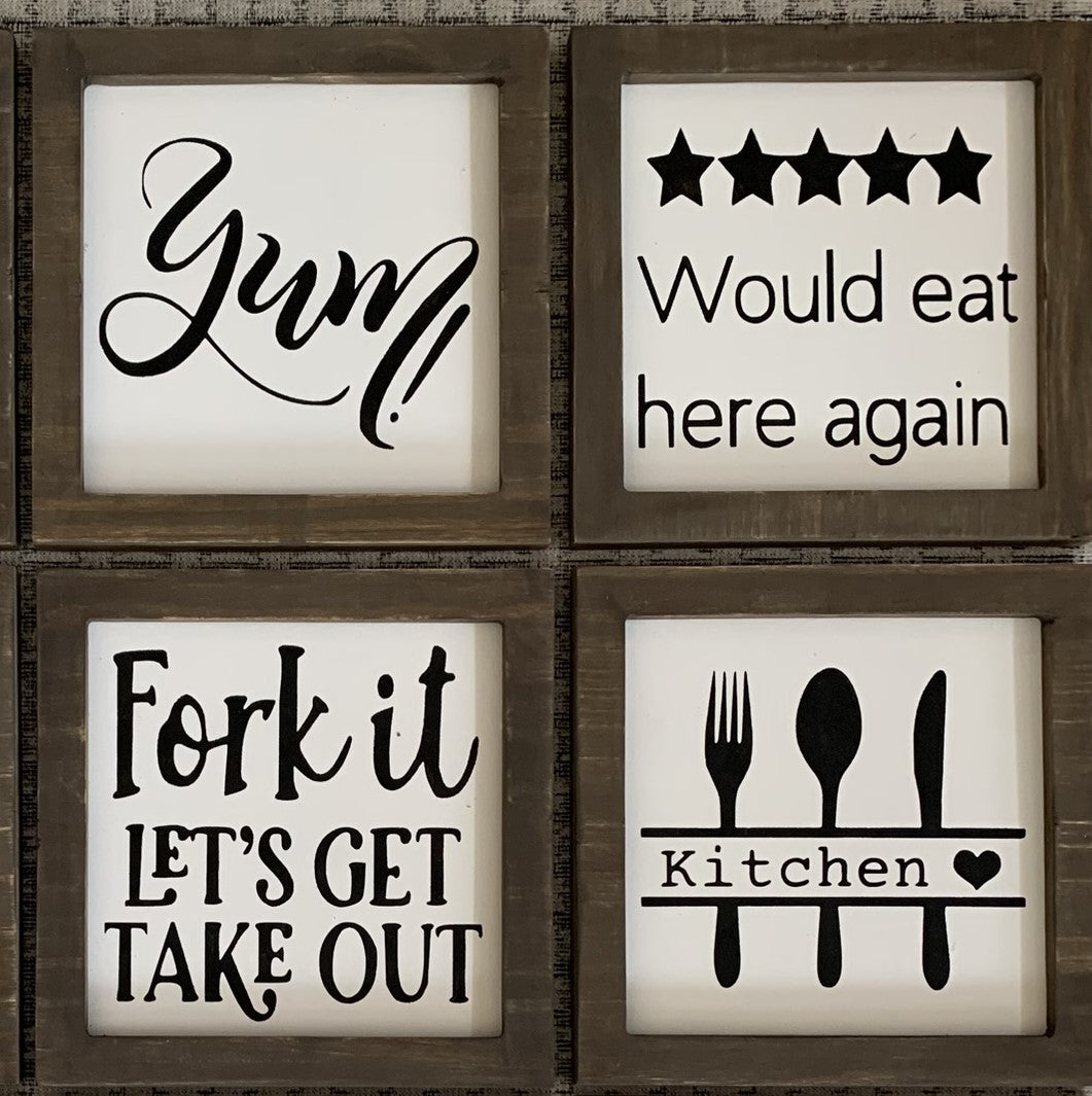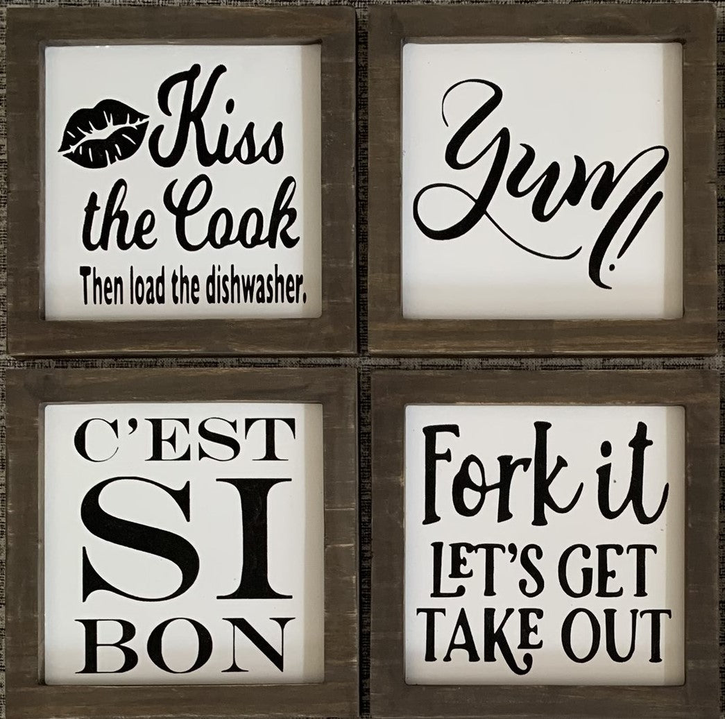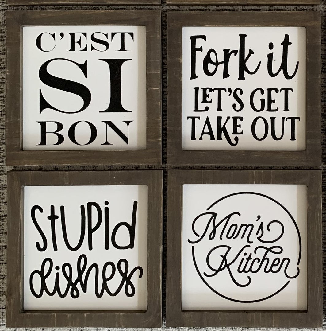 Introducing Kitchen Mini Signs 2 - the perfect addition to your culinary space! With these mini signs, add a touch of personality to your kitchen while also providing helpful information. Made from high-quality materials and featuring fun designs, these signs are both functional and stylish.