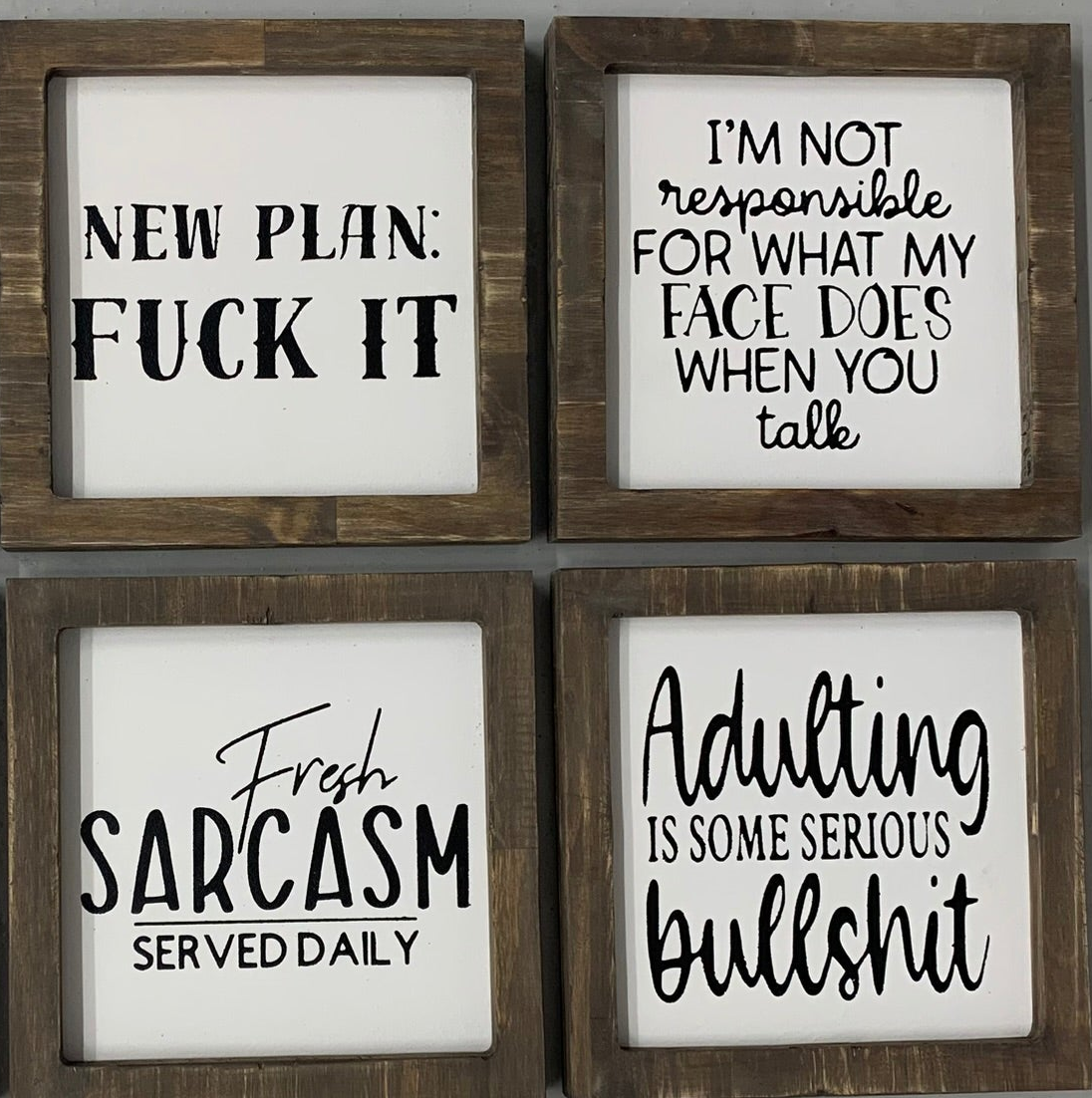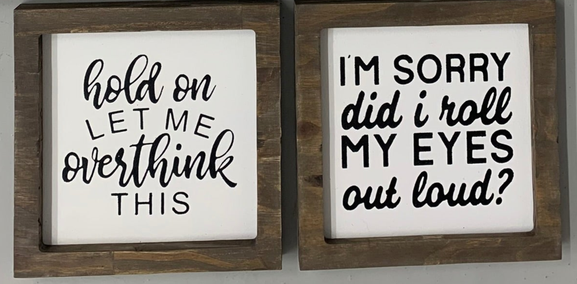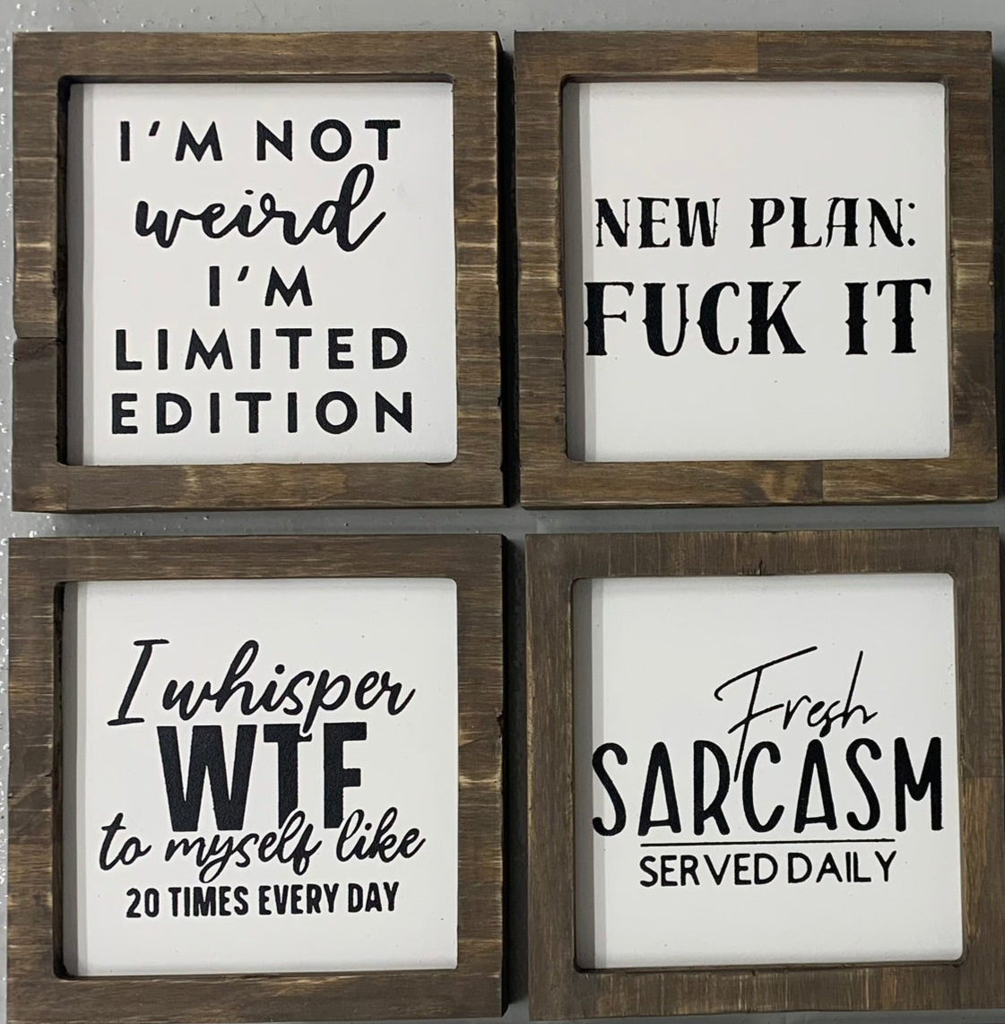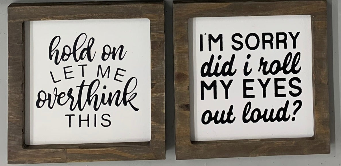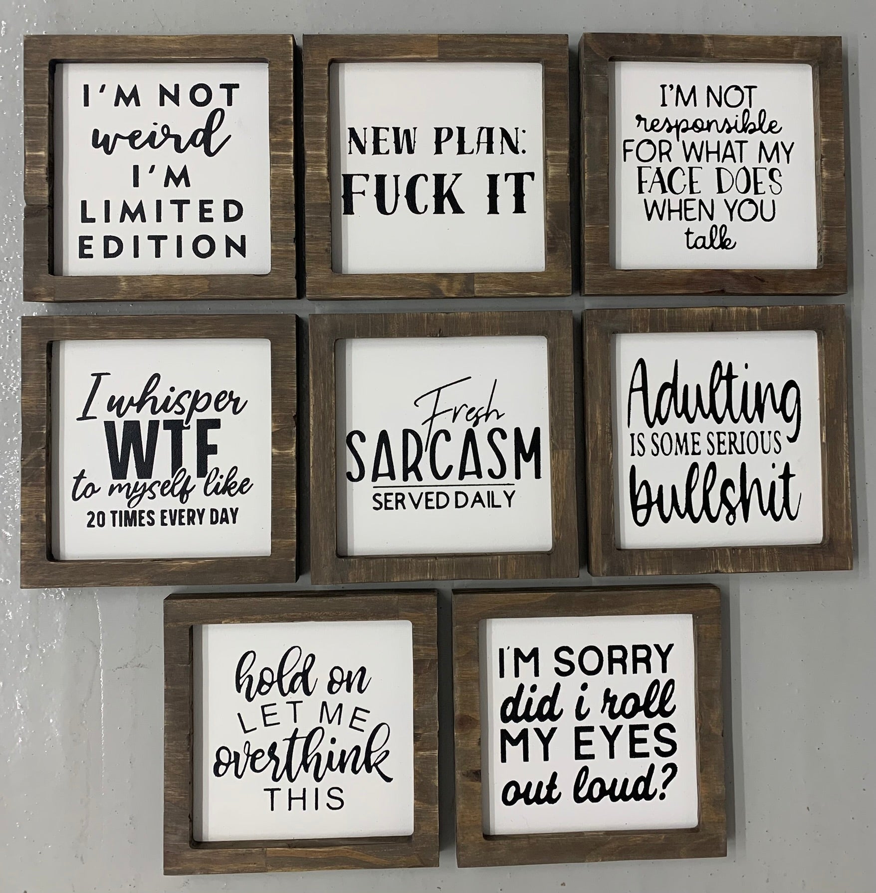 Add a dash of dry humor to your home with these handcrafted mini signs, framed in rustic wood for that perfect "I’m over it" charm. Whether you’re subtly roasting life’s chaos or just vibing with some sass, these little gems say it all—without saying too much. Ideal for gifting or keeping as your own personal mood board.