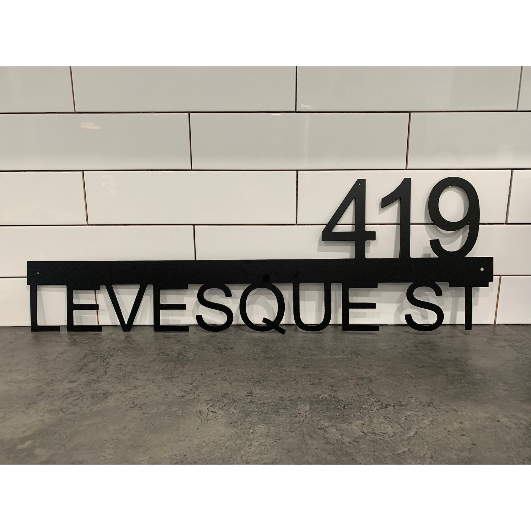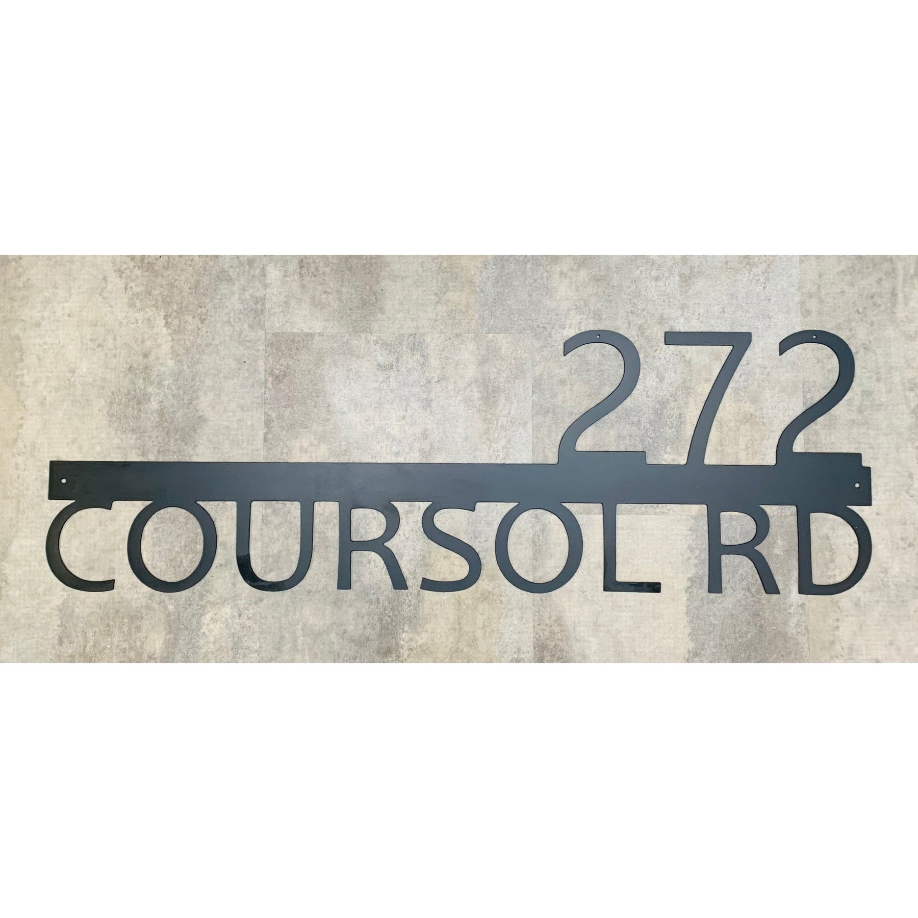 Our outdoor 16 gauge steel address signs are the perfect way to showcase your home or business. These signs are made from durable steel and finished with a high-quality powder coating, ensuring that they will withstand the elements for years to come. The address is cut out of the steel using a plasma cutter, creating a beautiful and intricate design. The powder coating gives the sign a smooth and professional finish, making it perfect for outdoor use. These signs are fully customizable, allowing you to choose the size, font, and color to best suit your needs. Whether you're looking to add a personal touch to your home or make it easy for visitors to find your business, these address signs are the perfect choice.